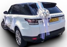 קישוט לרכב חתונה מעוצב בסגנון קלאסי עדין בצבעי קישוט כסוף- לבן. הכולל סט קישוט והתקנה על רכב חתונה